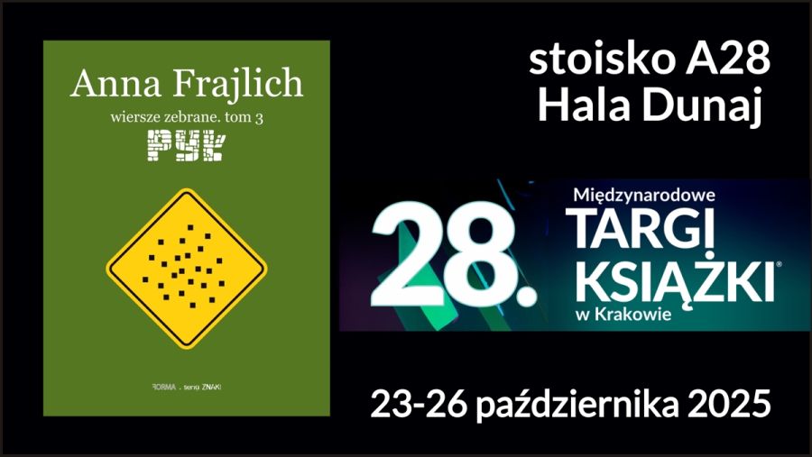 zapraszamy na stoisko A28 Hala Dunaj [Motyle Książkowe], gdzie podczas 28. Międzynarodowych Targów Książki w Krakowie [Kraków, ul. Galicyjska 9, Międzynarodowe Centrum Targowo-Kongresowe], zaprezentujemy nasze nowe publikacje [wydane razem z FLiHB oraz DK „13 Muz”]: