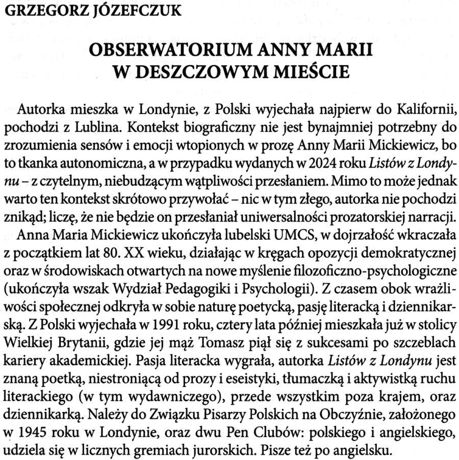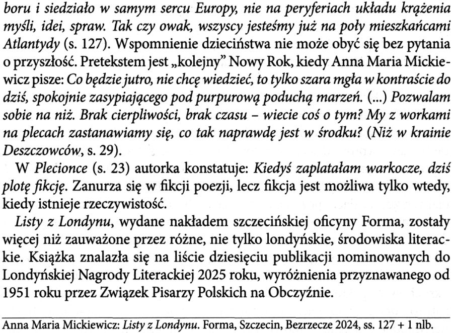 Anna Maria Mickiewicz Listy z Londynu — http://www.wforma.eu/listy-z-londynu.html